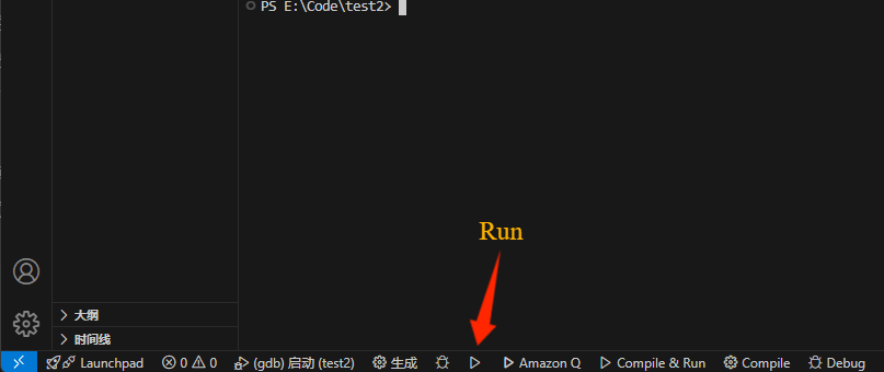点击 VSCode 底部状态栏的 Run(或运行) 按钮(或按 Ctrl+Shift+P,输入 CMake: Run 并选择)。