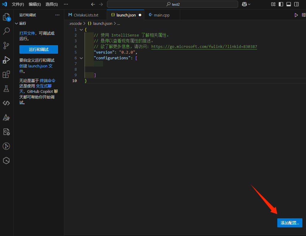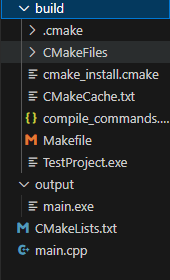 CMake Tools 会自动生成一个简单的 CMake 项目结构,包括 CMakeLists.txt 和一个示例 main.cpp 文件。